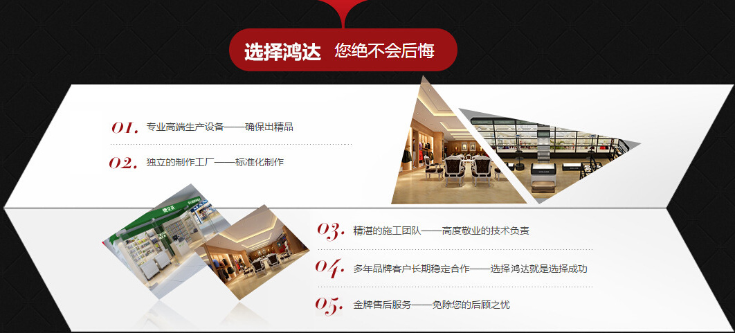 成都博鑫鴻達(dá)展柜有限公司成立于2016年,坐落于成都市新都區(qū)斑竹園鎮(zhèn)順江工業(yè)園區(qū),生產(chǎn)廠(chǎng)房占地面積50余畝,公司擁有員工10余名,公司獨(dú)立生產(chǎn)的產(chǎn)品有:展柜、倉(cāng)儲(chǔ)貨架、庫(kù)房貨架、倉(cāng)庫(kù)貨架、汽車(chē)4S貨架、超市貨架、賣(mài)場(chǎng)貨架、******鈦合金貨架、鈦合金旋轉(zhuǎn)柜、展柜展示柜、各種展架展示架、從事倉(cāng)儲(chǔ)的研制、生產(chǎn)及銷(xiāo)售。